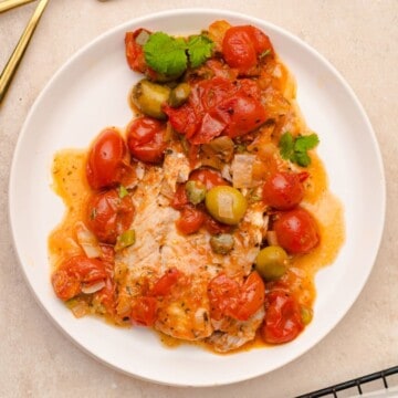 I like serving this dish with a scoop of my jalapeno rice recipe to soak up all that Veracruz sauce, plus a sprinkle of fresh cilantro for brightness.